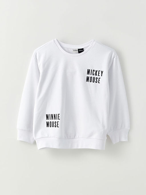 Bisiklet Yaka Minnie ve Mickey Mouse Bask?l? Uzun Kollu K?z ?ocuk Sweatshirt