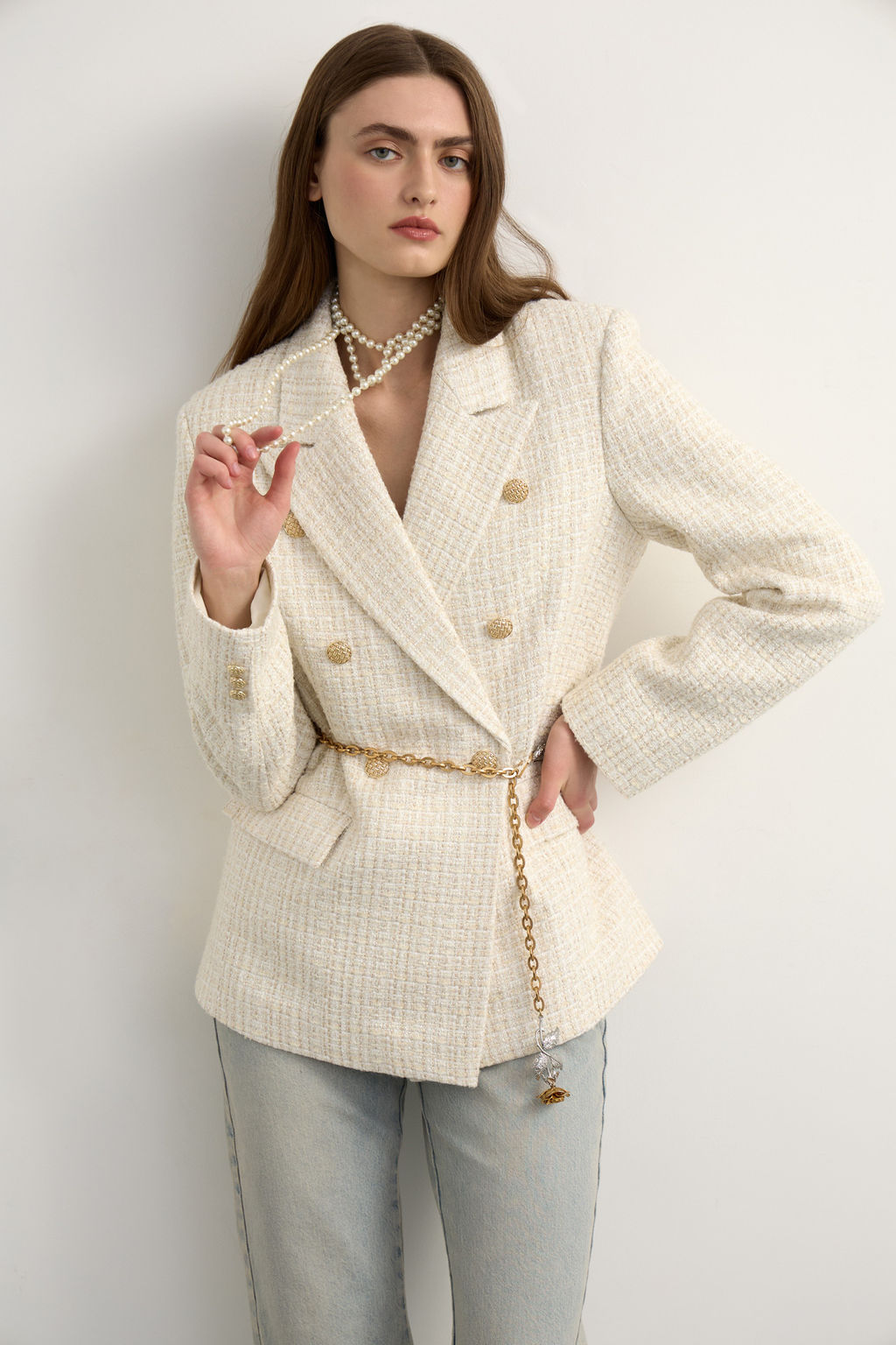 Жакет из твида двубортный