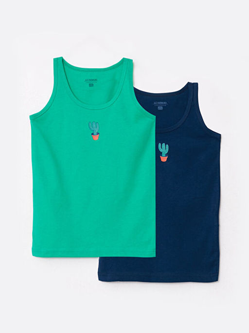 Bisiklet Yaka Bask?l? Pamuklu Erkek ?ocuk Atlet 2li
