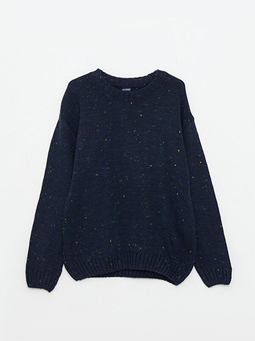 Bisiklet Yaka Uzun Kollu Kendinden Desenli Erkek ?ocuk Triko Kazak