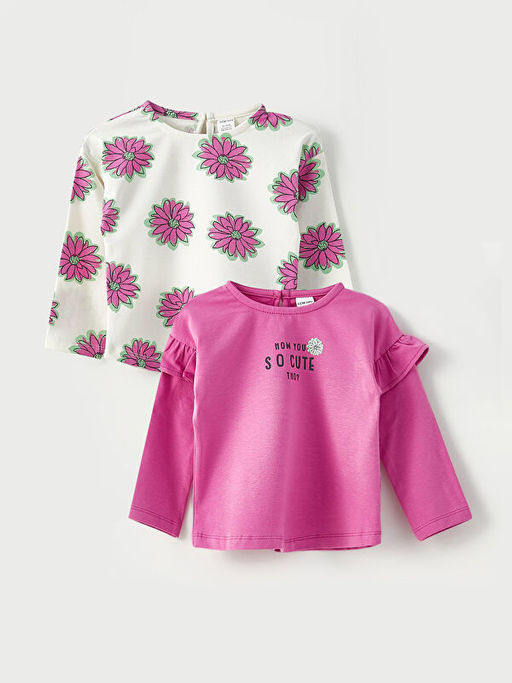 Bisiklet Yaka Uzun Kollu Bask?l? Pamuklu K?z Bebek Sweatshirt 2li