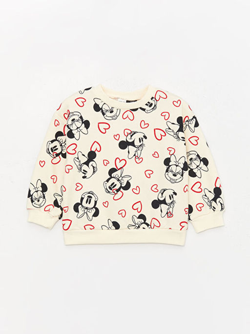 Bisiklet Yaka Uzun Kollu Minnie Mouse Bask?l? K?z Bebek Sweatshirt