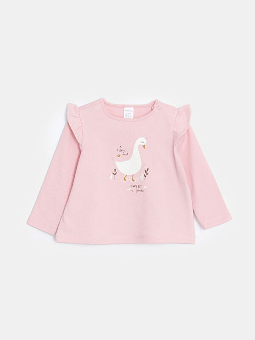 Bisiklet Yaka Uzun Kollu Bask?l? K?z Bebek Ti??rt