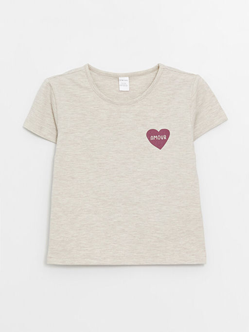 Bisiklet Yaka Bask?l? K?sa Kollu K?z Bebek Ti??rt