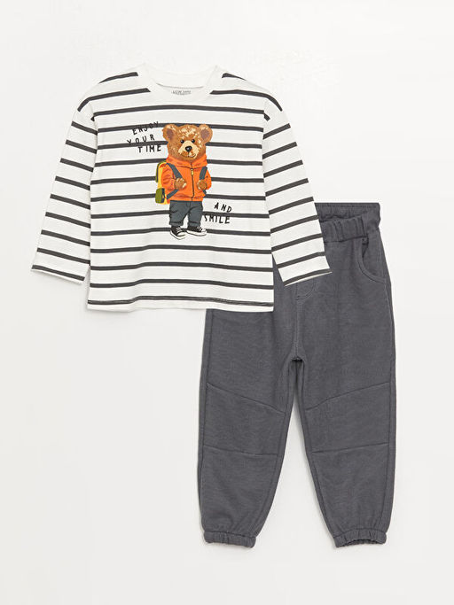 Bisiklet Yaka Uzun Kollu Bask?l? Erkek Bebek Ti??rt ve Pantolon 2li Tak?m