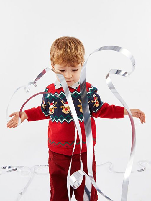 Bisiklet Yaka Uzun Kollu Y?lba?? Temal? Erkek Bebek Triko Kazak
