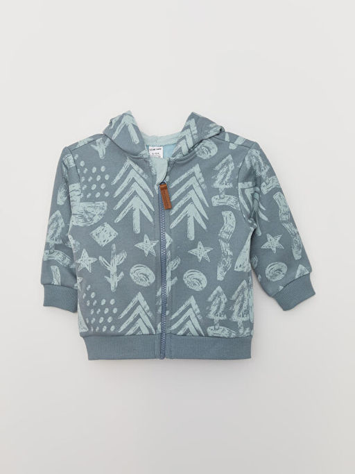Kap??onlu Uzun Kollu Bask?l? Erkek Bebek Fermuarl? Sweatshirt