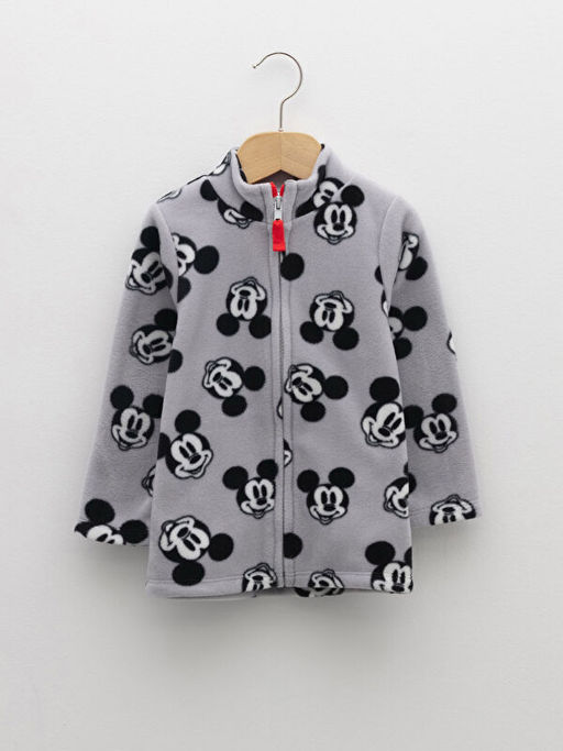 Dik Yaka Uzun Kollu Mickey Mouse Bask?l? Polar Erkek Bebek Fermuarl? Sweatshirt