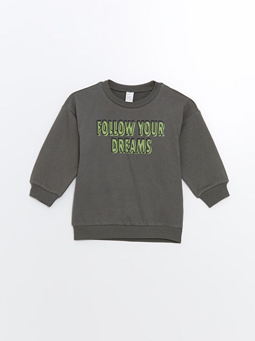 Bisiklet Yaka Bask?l? Erkek Bebek Sweatshirt