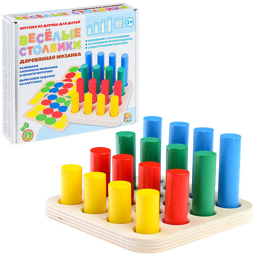 Мозаика деревянная "Весёлые столбики" 16 элементов