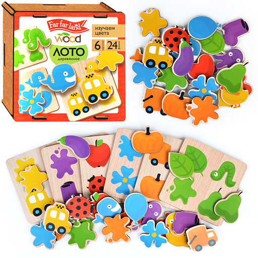 Лото зигзаг "Изучаем цвета" 6 карточек, 24 фишки ( деревянная )