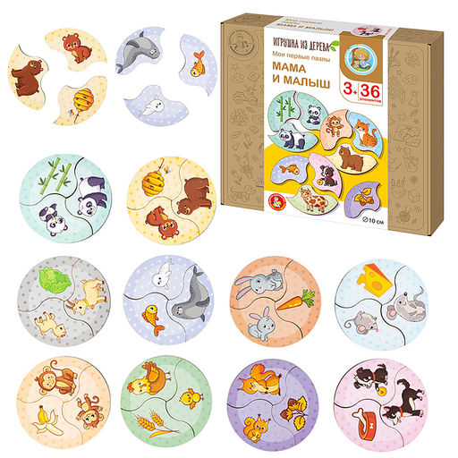 Пазлы из дерева. Мои первые пазлы "Мама и малыш" 36 элементов