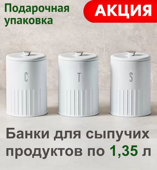 Набор банок для сыпучих продуктов Astor, белые, 1,45 л, 3 шт