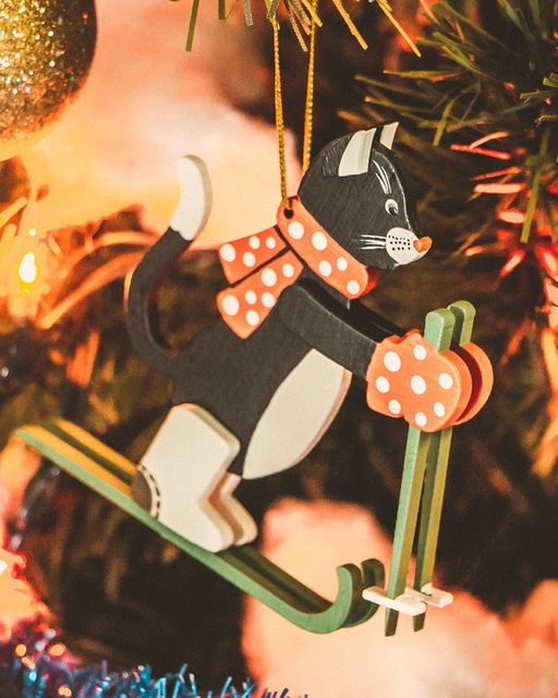 Новогодние украшения - Кошка на лыжах 9005