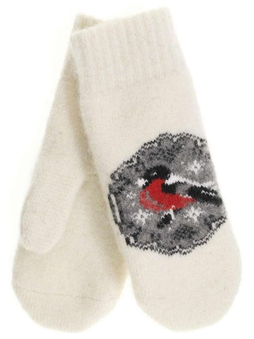 Варежки женские "Снегирь в круглом окошке" КРУГ 3453-2