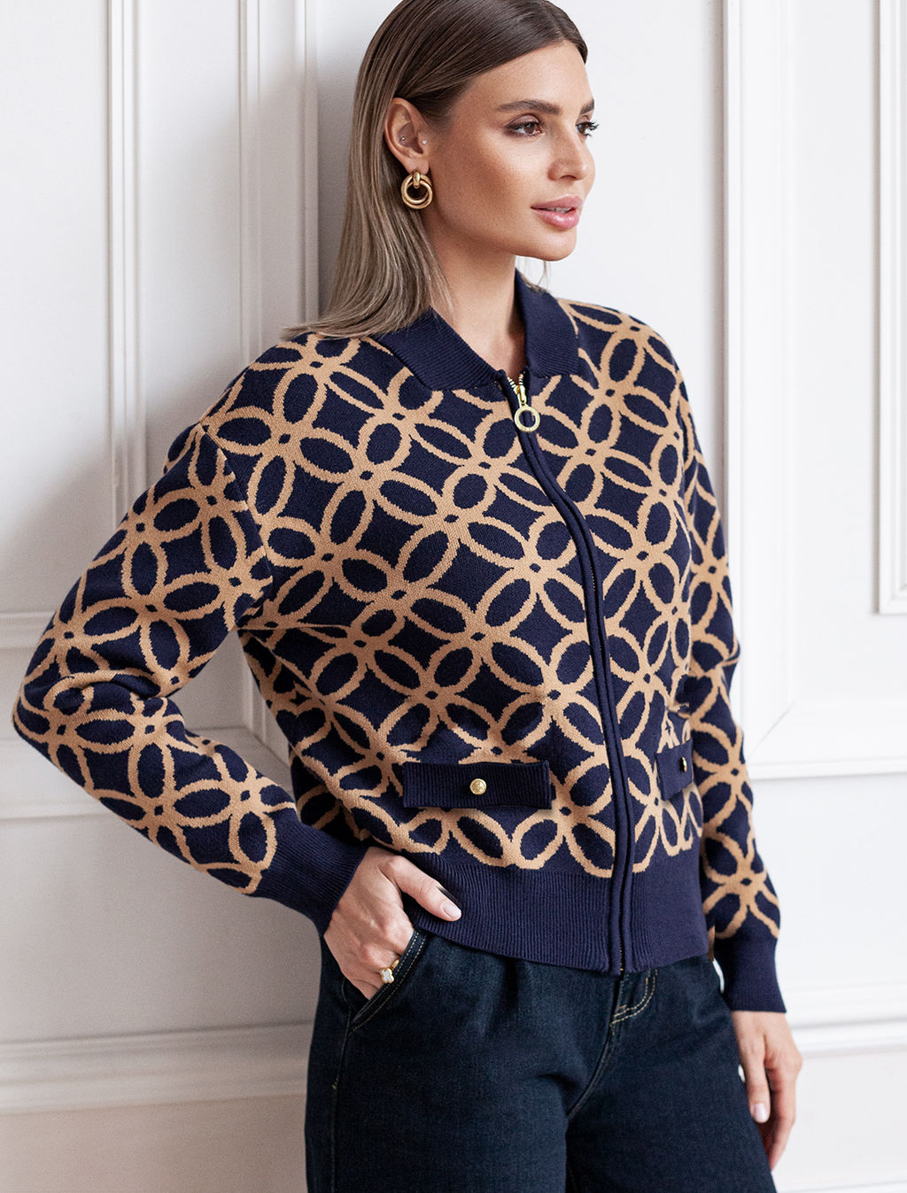 VILATTE / Бомбер двуслойной жаккардовой вязки с кашемиром