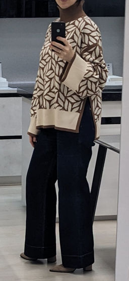 VILATTE / Свитер с боковыми разрезами двуслойной жаккардовой вязки с кашемиром