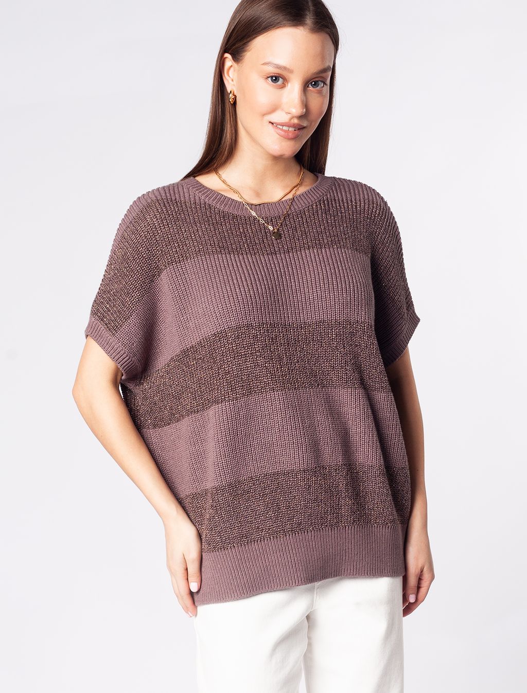 Хлопковый джемпер фактурной вязки с полосками с люрексом