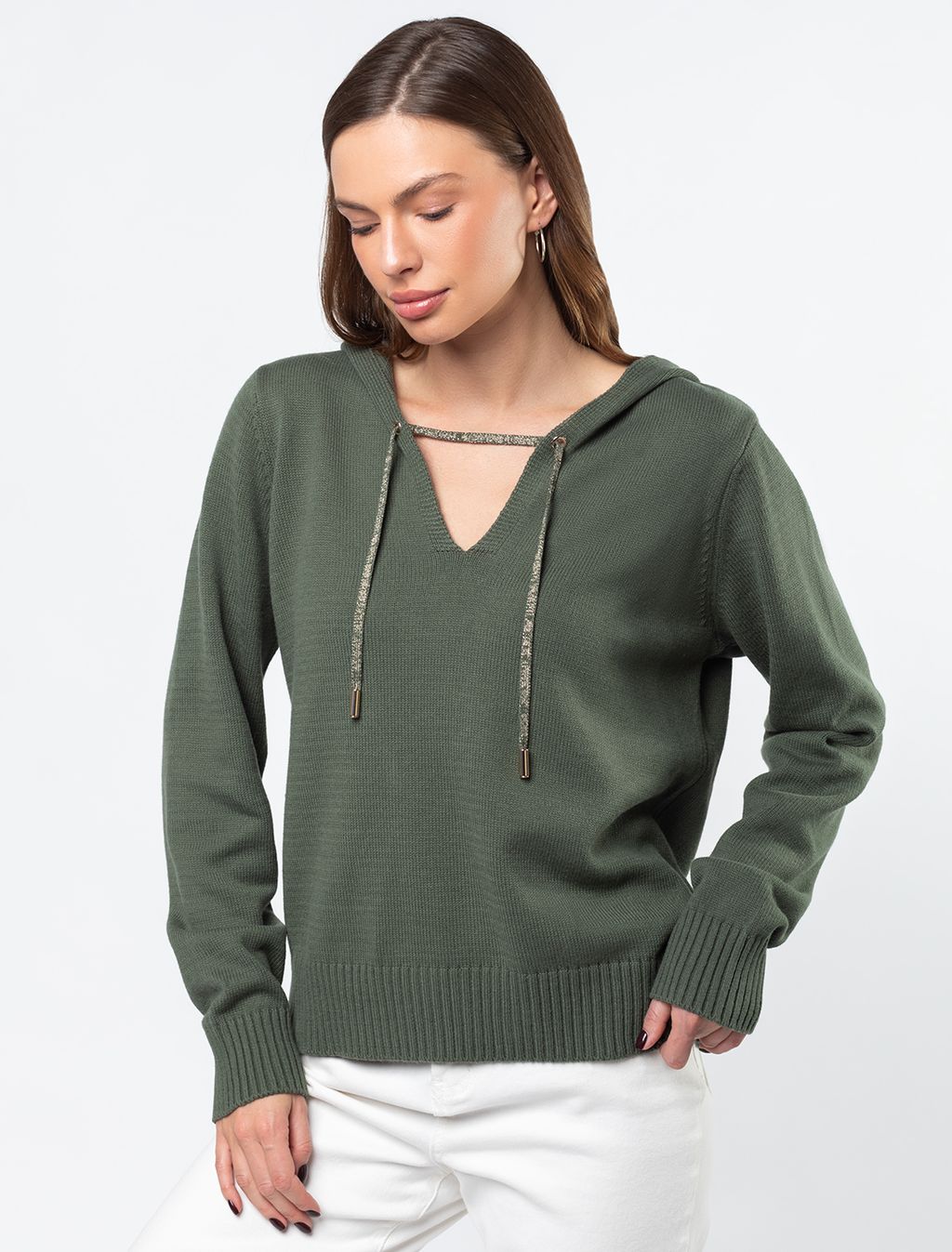 VILATTE / Вязаное худи из хлопка со шнуром с люрексом и золотистыми наконечниками
