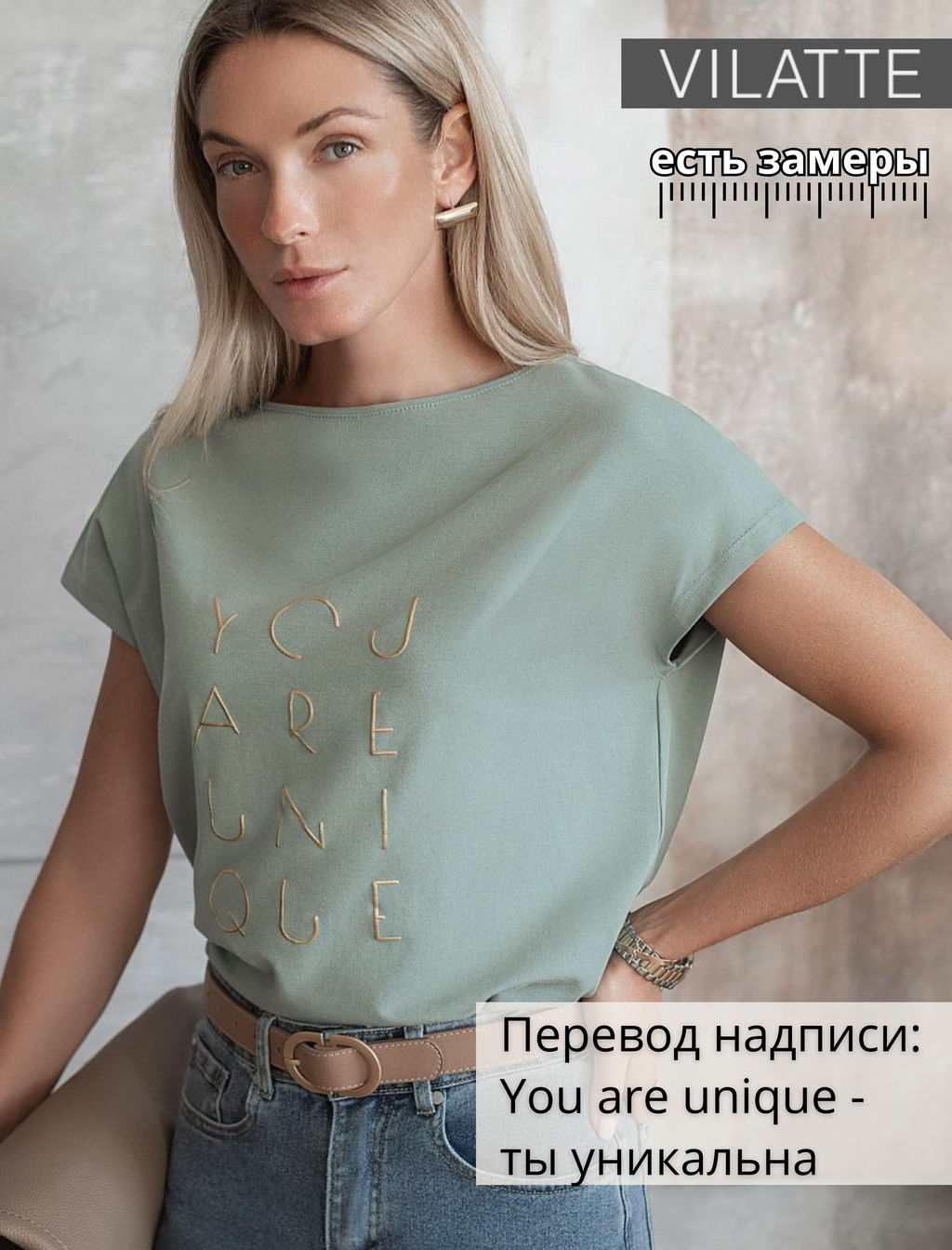 VILATTE / Футболка из хлопкового облегченного полотна с авторским принтом