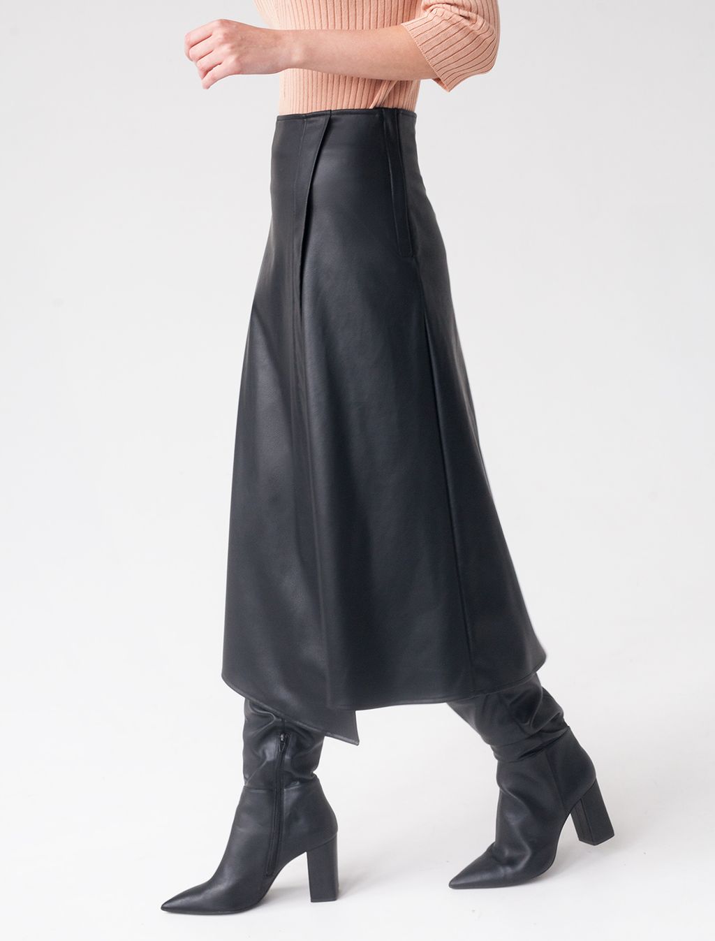 Юбка с разрезом сбоку из эластичной эко-кожи