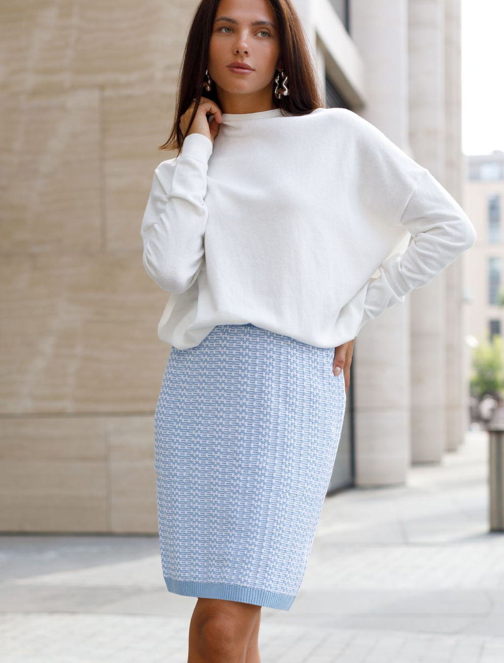 Юбка Vilatte D36.014 фактурной вязки голубой
