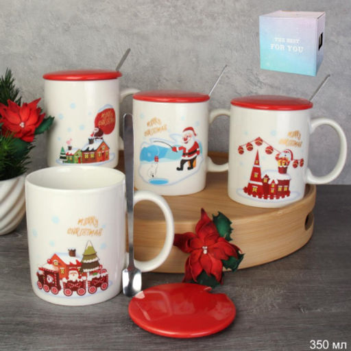 Кружка новогодняя с крышкой, ложка/350 мл/ HB-A2092 /уп 60/