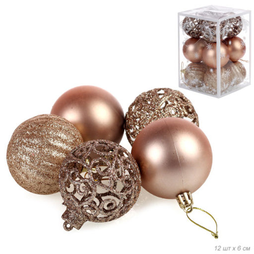 Елочные шары 12 штук 6 см бронза / B-2668 /уп 80/