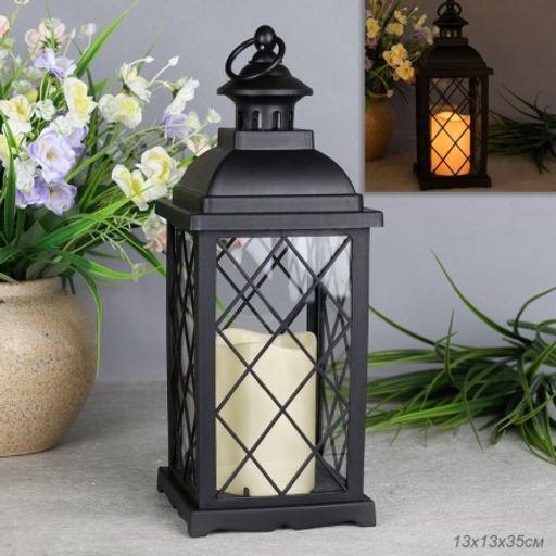 Светильник фонарь настольный 13x13x33 см черный / YR1411B /уп 24/НОВОГОДНИЙ