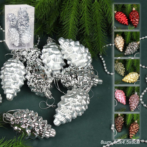 Елочное украшение Шишка 8 штук 8 см / 5620 /уп 72/ микс (Красный)