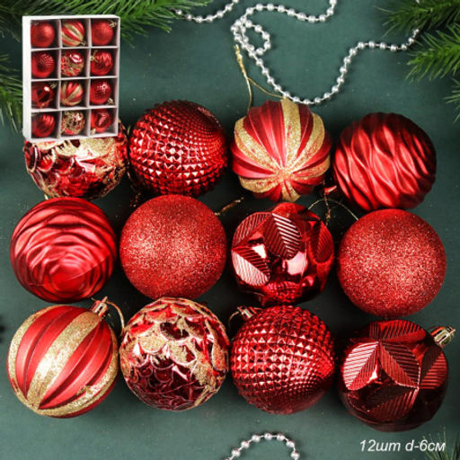 Елочное украшение Шар 12 штук 6 см / 5617 /уп 60/ красный микс