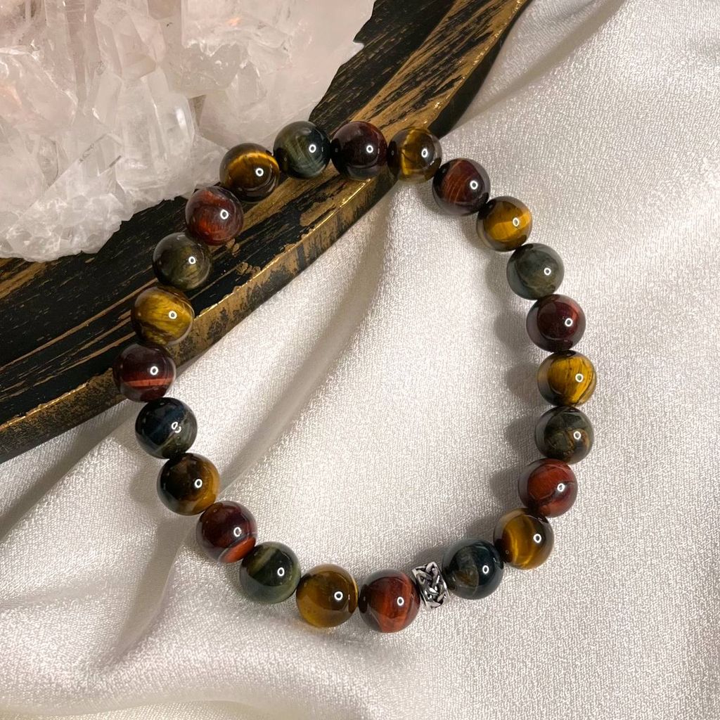 Браслет со вставкой из Тигрового, Соколиного и Бычьего глаза
