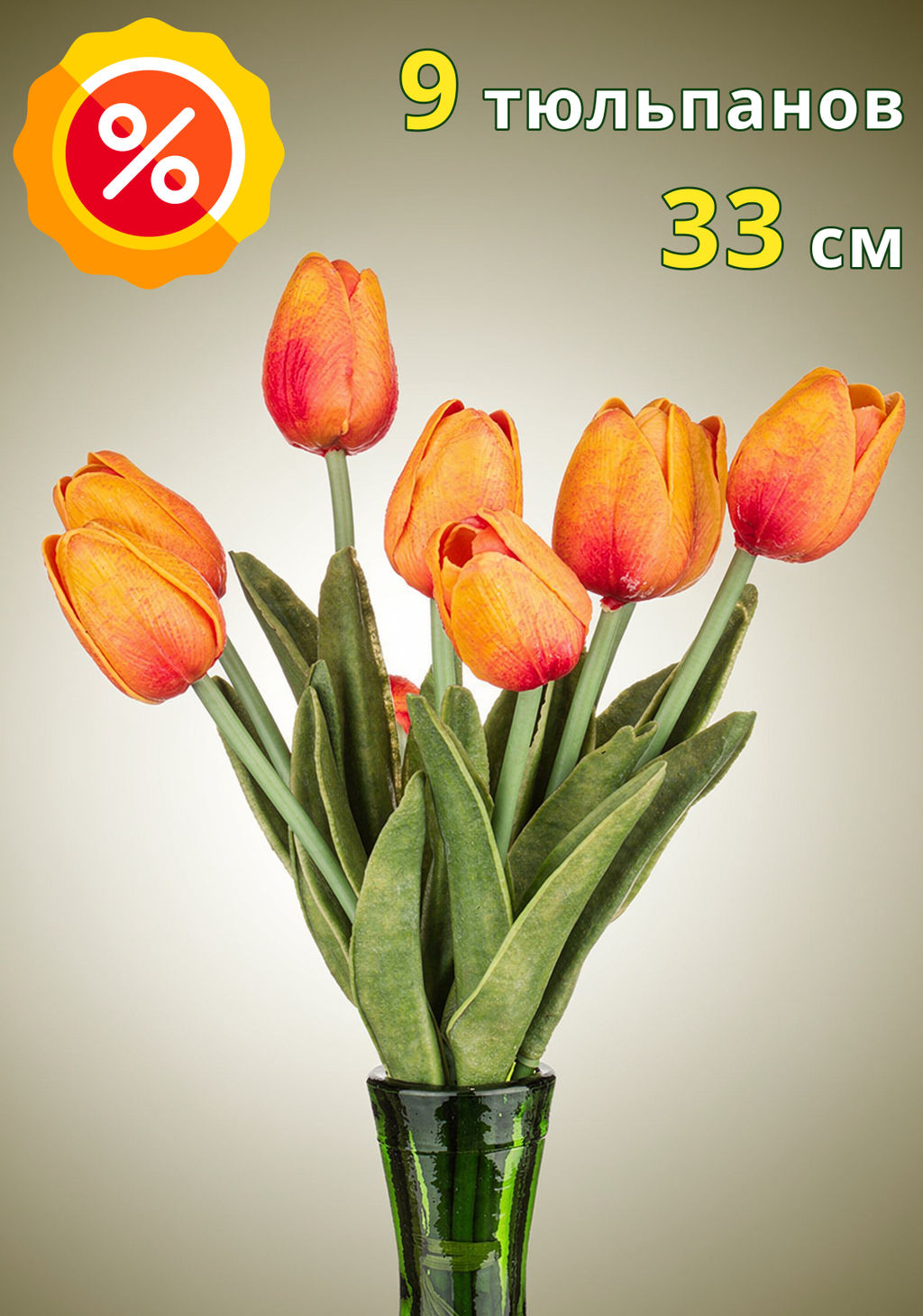 КОМПЛЕКТ ЦВЕТОВ ИСКУССТВЕННЫХ ИЗ 9 ШТ ТЮЛЬПАН ДЛИНА=33 СМ