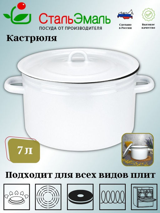 Кастрюля 7,0л цил. 2с18 белосн.