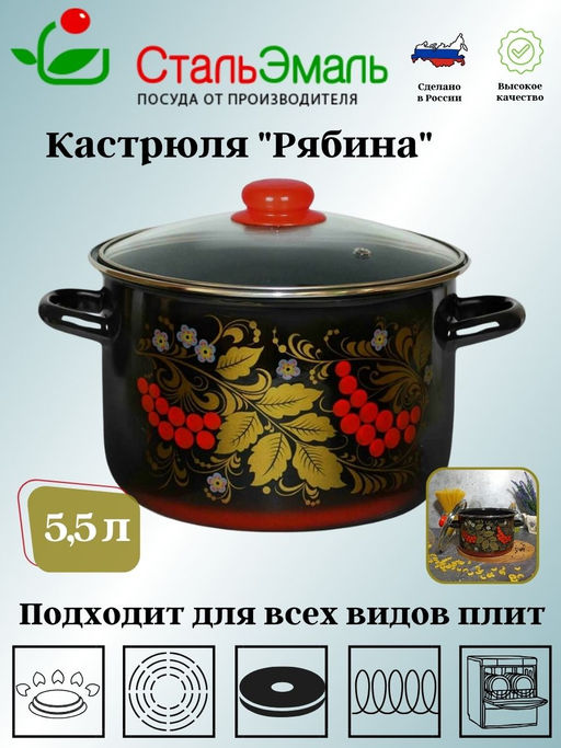 Кастрюля 5,5 л цил. Рябина 7RD221S черн