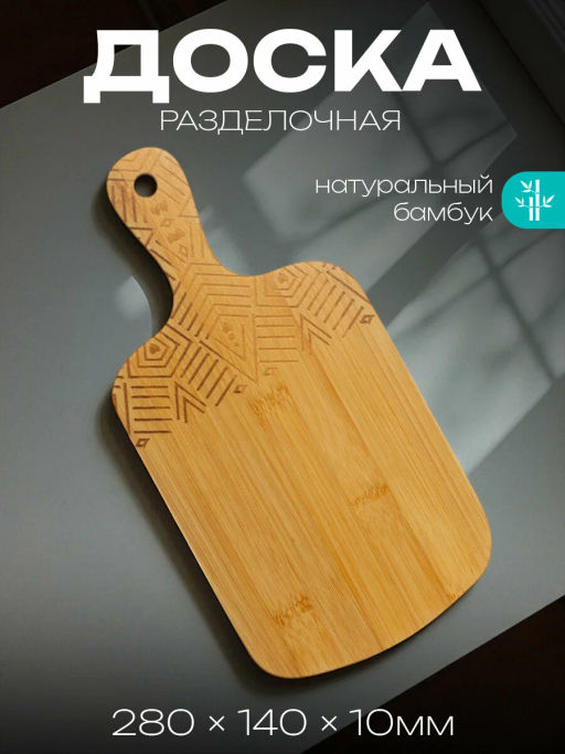 Доска разделочная бамбук 280*140*10мм №8 с ручкой КТ-ДР-133
