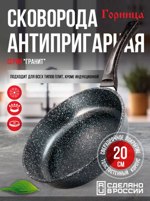 Сковорода 200/51мм с пластиковой ручкой без крышки с2051аг