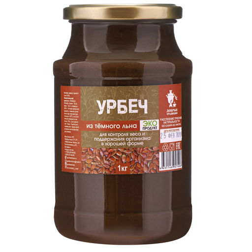 Урбеч из темного льна, стекло, 1 кг