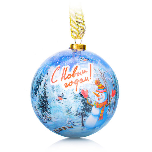 Новогоднее украшение. Ёлочный шар с лентой, в подарочной коробке, Встреча с Дедушкой Морозом, 7,5 см (собственная разработка) НУ-6361