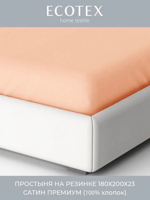 Простыня на резинке 180х200 Моноспейс персиковый