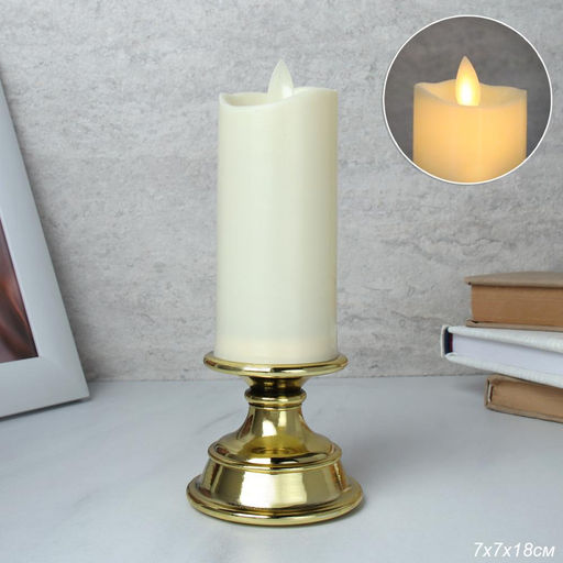 Свеча светодиодная в подсвечнике подвижный фитиль 7x18 см / 229L /уп 120/