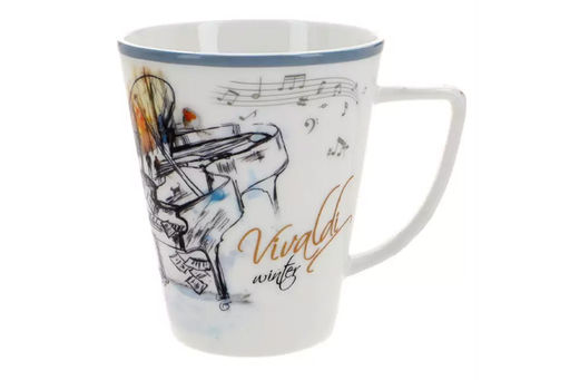 Кружка, 380 мл, фарфор F, белая, с голубым кантом, Зима, A. Vivaldi