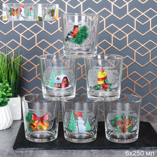 Стакан 6 штук 250 мл "Зимние узоры" / Д048/133 /уп 6/ низкий Новогодний