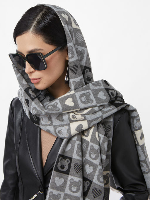 в составе ШЕРСТЬ и КАШЕМИР Большой, мягкий, теплый двусторонний палантин с принтом.
