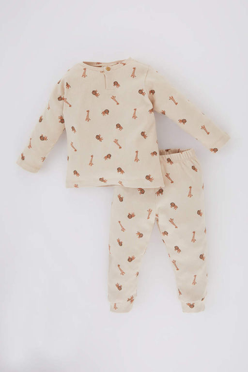 Пижамный комплект в рубчик с длинными рукавами и принтом сафари для маленьких мальчиков