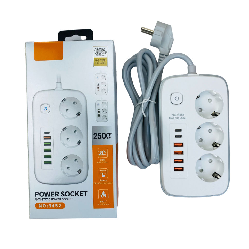 Удлинитель сетевой Buro 3454 3 розетки 4 USB 2 Type-C кабель 2 м белый
