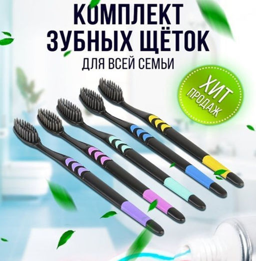 Зубные щетки средней жесткости 5шт.черные