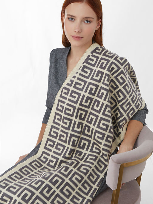 в составе ШЕРСТЬ и КАШЕМИР  Большой, мягкий, теплый двусторонний палантин с принтом.