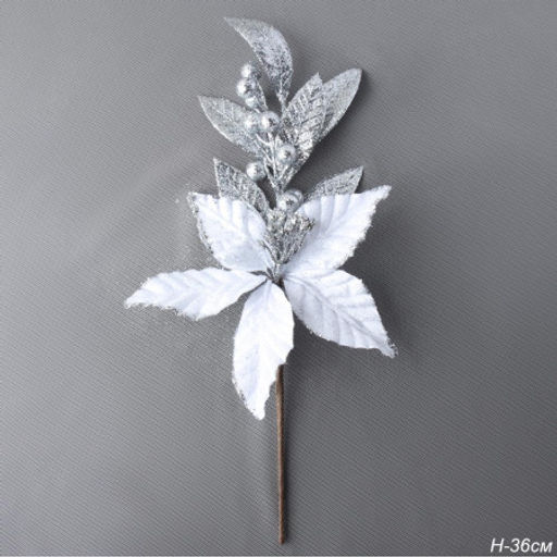 Цена за 1 шт. Цветок декоративный Пуансеттия белая с серебром / P8 /уп 48/480/Новый год
