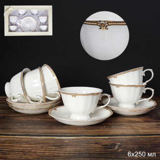 Цена за 1 шт. Чайный набор 12 предметов 250 мл на ножке / RS/12-FY21002 /уп 8/ Костяной фарфор